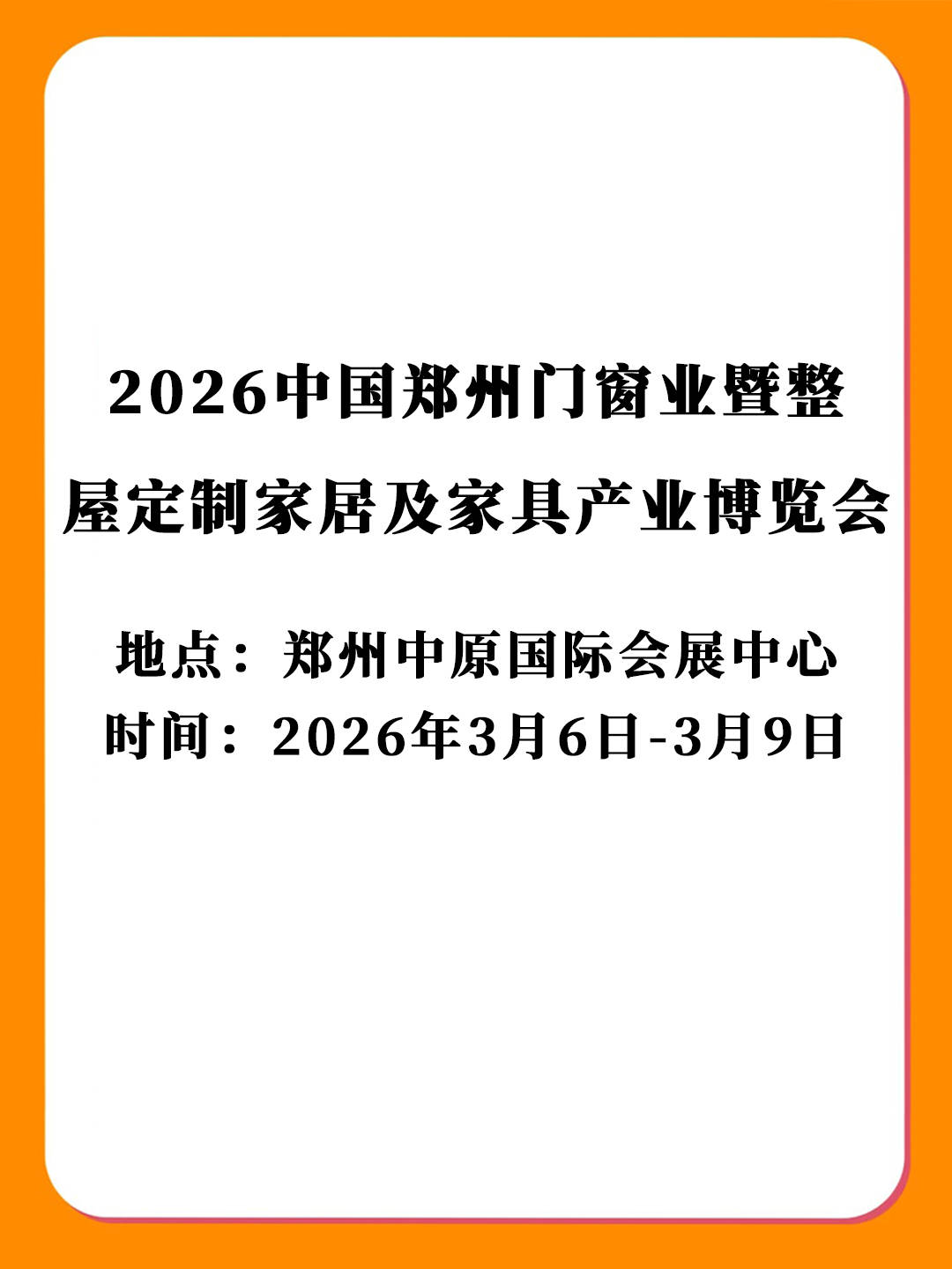 一城双展,调和共创!2026年3月6日-9日,“2026中邦郑州门窗业展览会”“2026中邦郑州整屋定制家居及家具财产展览会”将移师至“亚洲第二大展馆”——郑州中邦邦际会展核心(航空港区)同期雄伟进行!